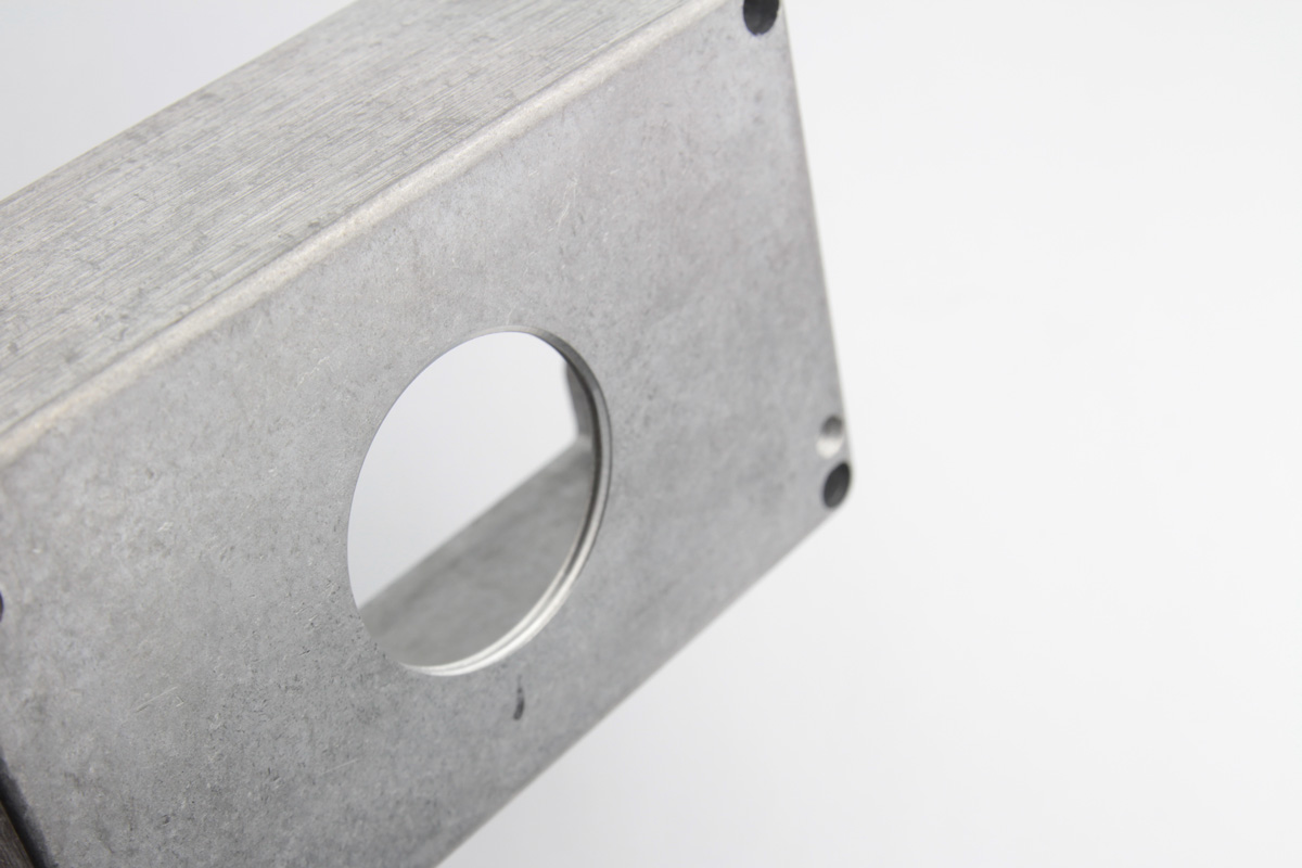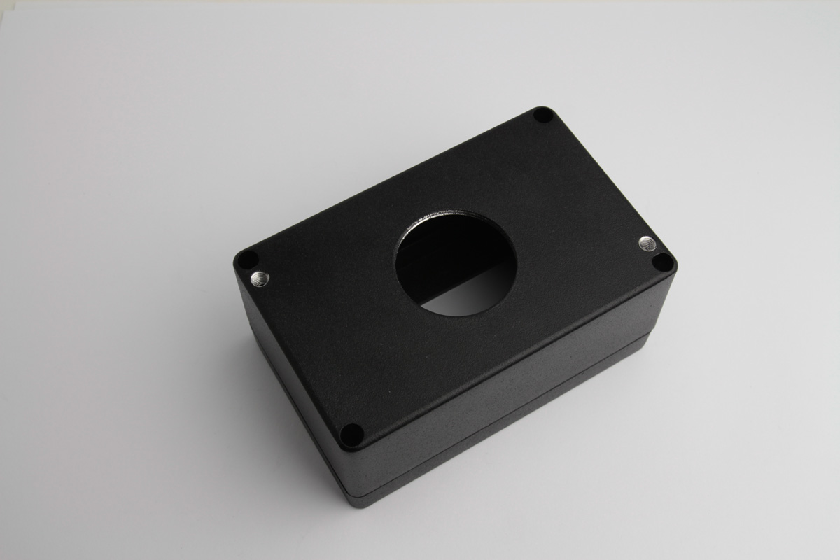 Исходный корпус из алюминия для доработки был предоставлен заказчиком, 410 комплектов. Мы отфрезеровали на задней стенке корпуса центральное отверстие под резьбу М40 для кабель-ввода.