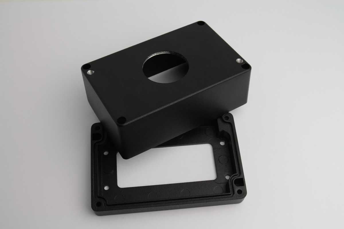 Покрыли черной порошковой краской RAL 9005 с внутренней и внешней сторон составные части алюминиевого корпуса. При этом внутреннюю часть резьбы защитили методом маскирования.