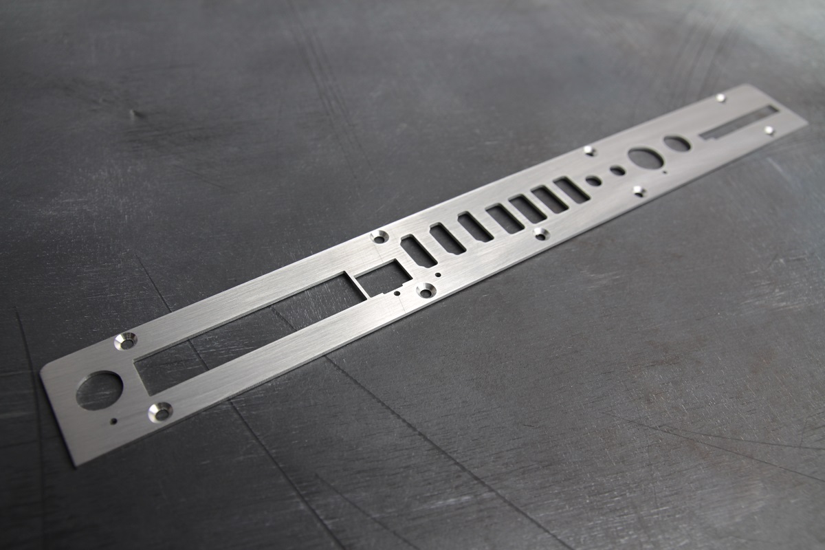 Из 1.5 мм листового алюминия отфрезеровали лицевые панели корпусов. Лицевые панели также сделаны с зенковкой под болты для соединения с самим корпусом.