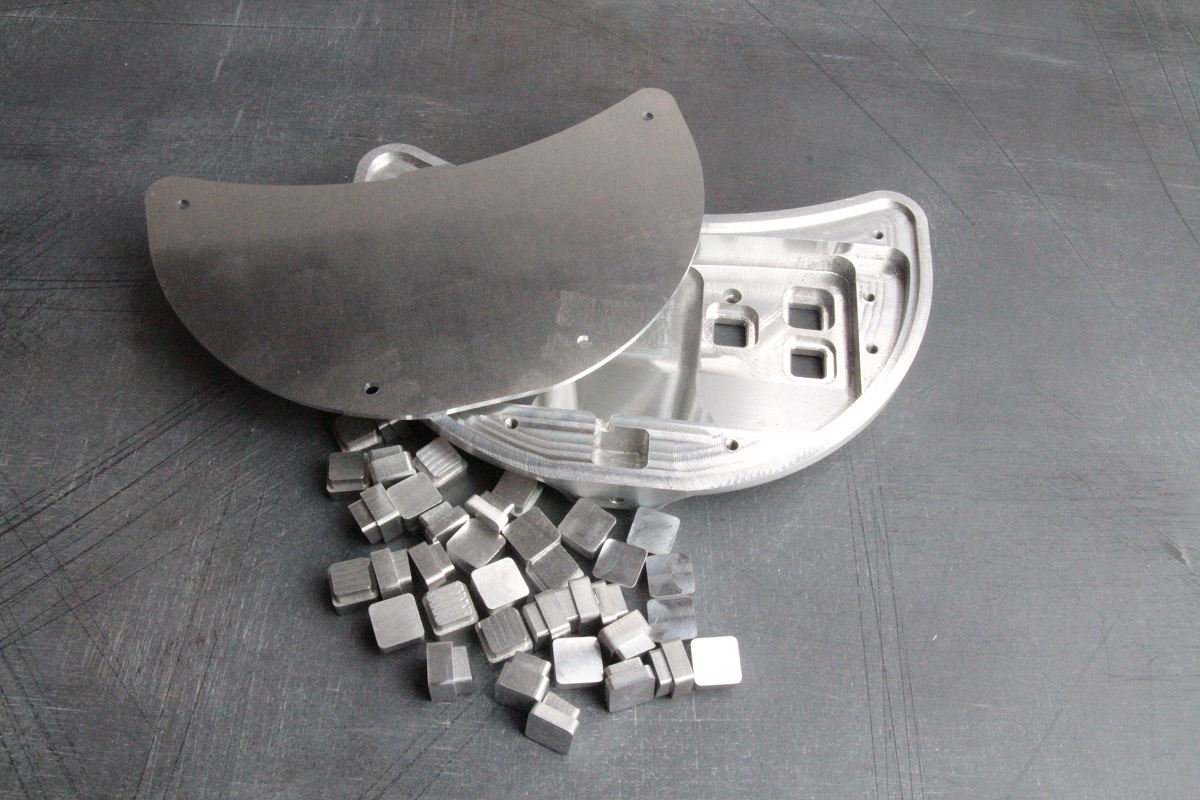 Из плиты алюминия АМГ2М толщиной 25.0 мм отфрезеровали основание корпуса. Характерной особенностью этого корпуса является большое количество выборок различной сложности, а также 3D-фрезеровка.