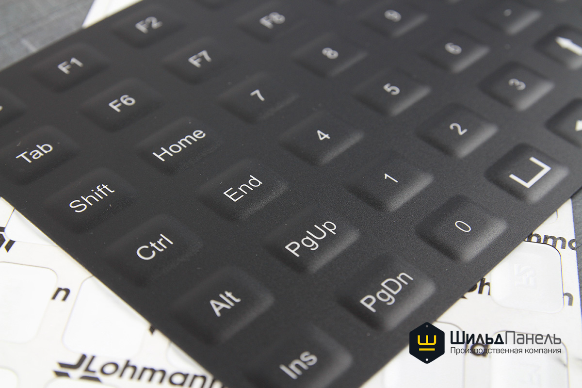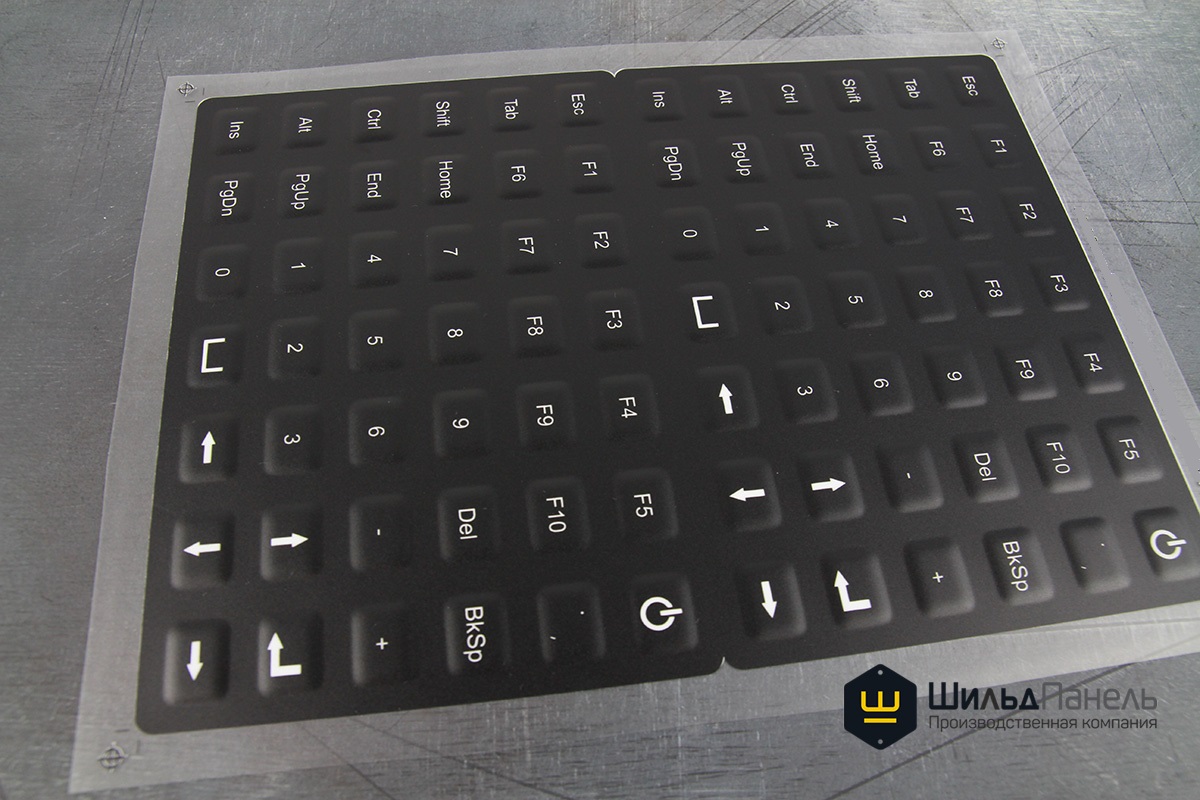 За счет вакуума и нагрева сделали на пленке выпуклую форму кнопок (так называемая “формовка”, “пуклевка”).