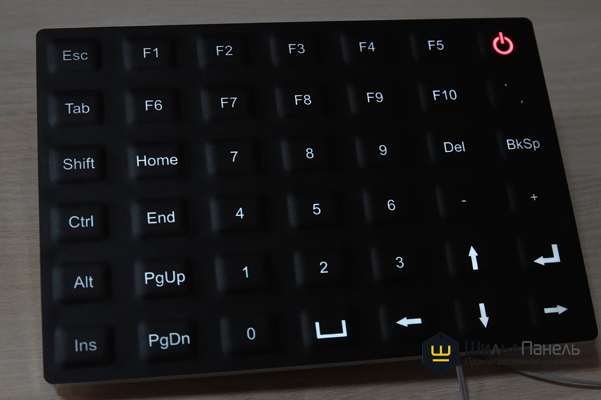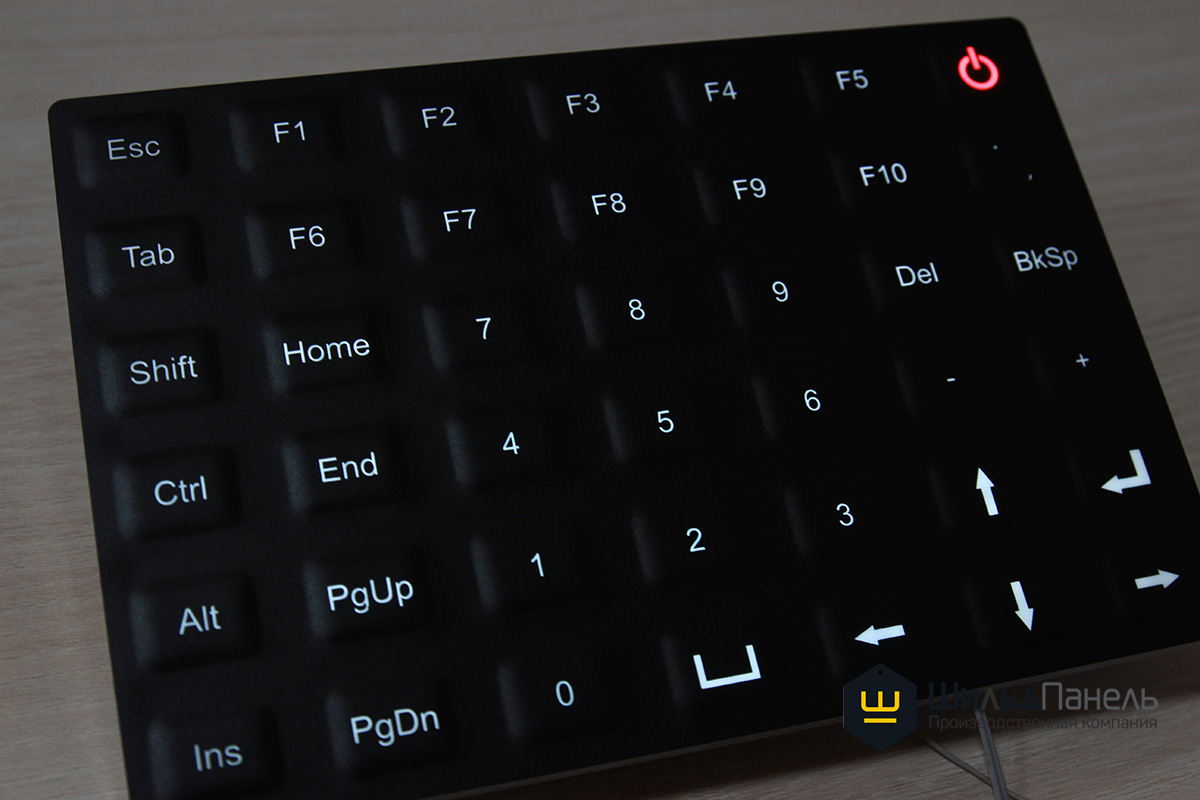 На основании технического задания заказчика, наш отдел разработки проработал весь конструктив изделия с предоставлением КД заказчику. Одним из ключевых пожеланий являлось, чтобы все кнопки имели белую светодиодную подсветку, а кнопка включения/выключения - красную подсветку, так, чтобы белая светодиодная подсветка не засвечивала красную.
