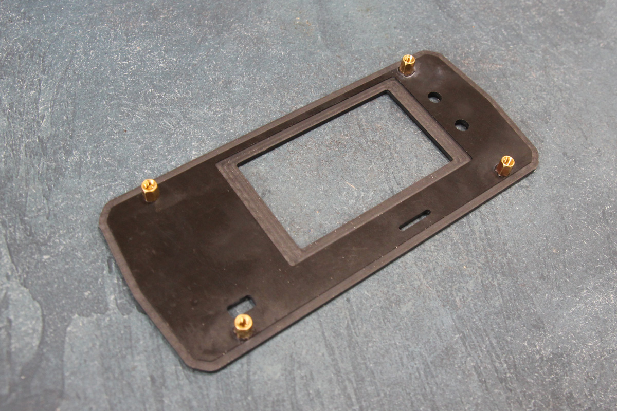 Отфрезеровали габарит полистирола 3мм, отверстия и выборка под дисплей, нарезали резьбу под латунные стойки. Готовая фрезерованная пластина будет являться основанием прибора.