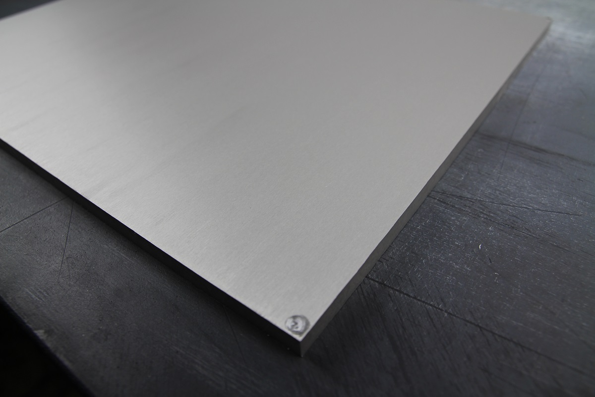 На ленточном шлифовальном станке осуществили крацовку 10.0 мм листового сырого алюминия. Заказчику была необходима горизонтальная шлифовка на панелях.