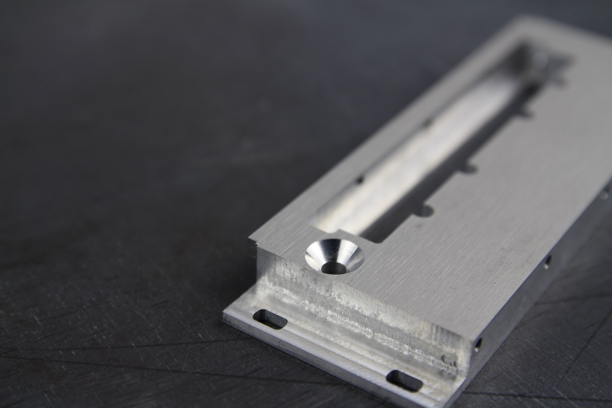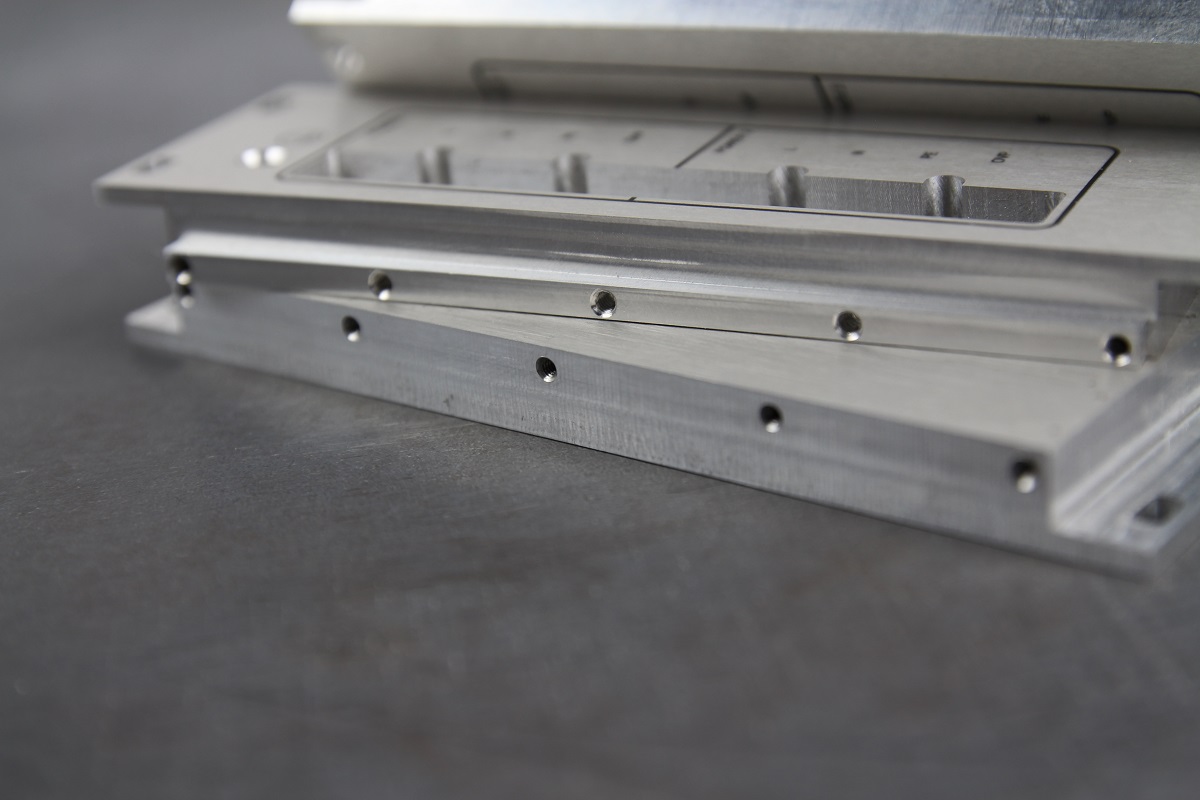 Отфрезеровали панели на ЧПУ-фрезере. Сделали зенковку. Резьбонарезным манипулятором нарезали 13 резьбовых отверстий М3 в каждой панели.