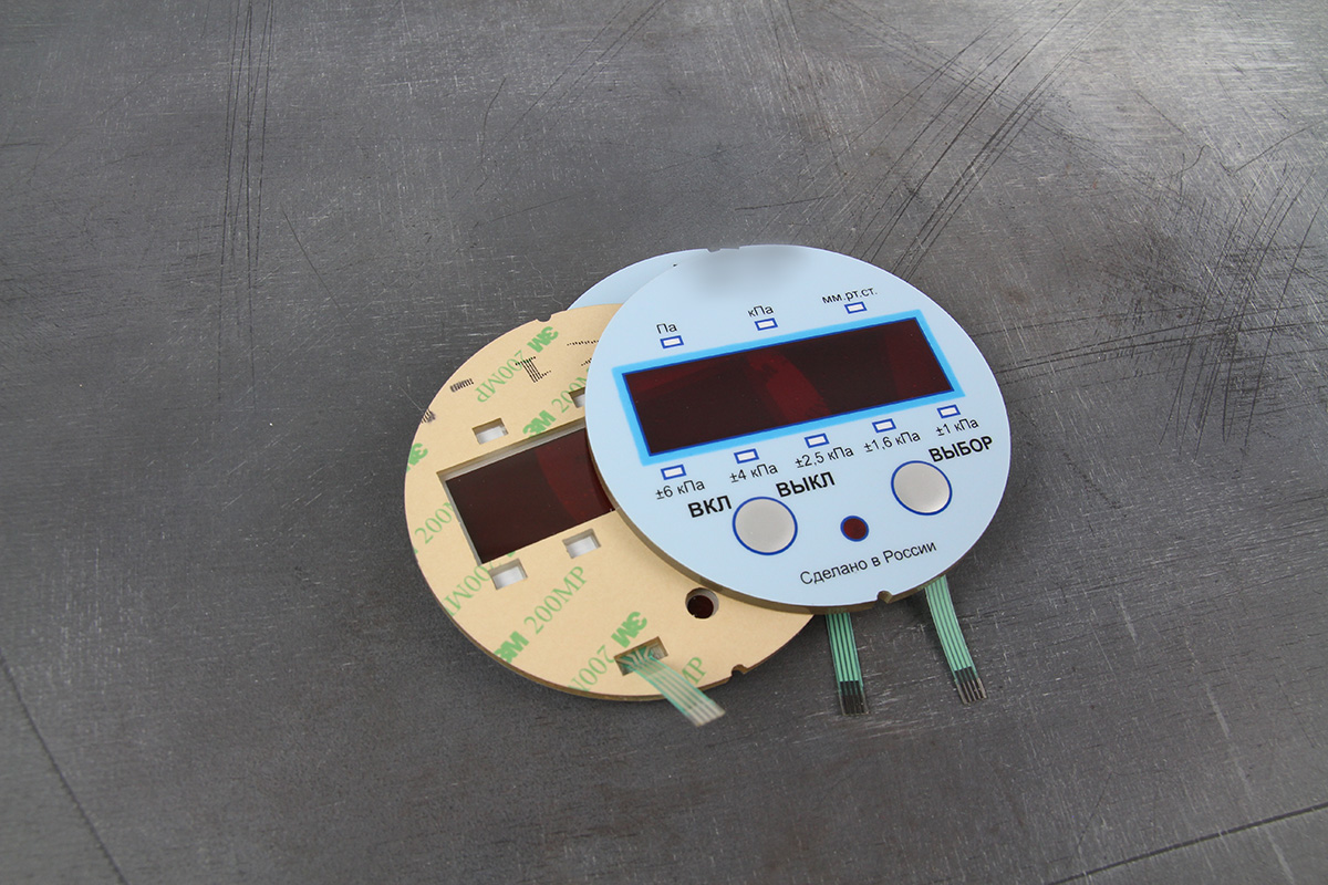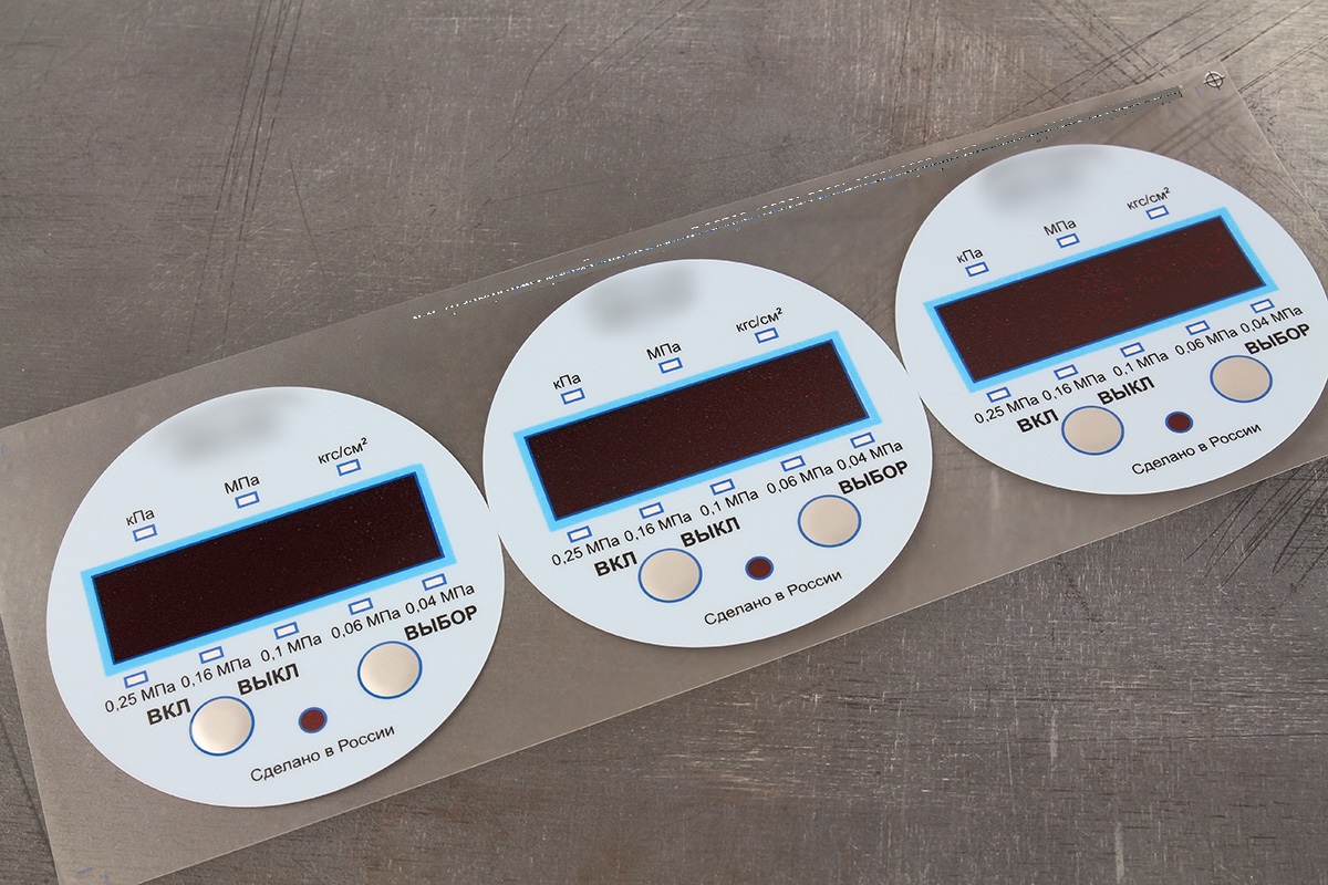На участке сборки собрали слои пленочной клавиатуры с монтажом металлических 12 мм мембран (усилие нажатия 350 гр.). После чего отправили “бутерброд” на лазерную резку габарита.