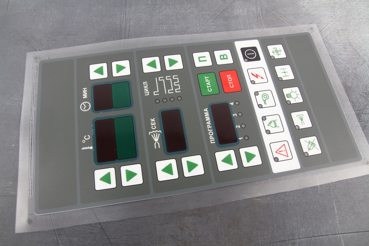 Методом шелкографии на лавсане F200 изготовили пленочную лицевую панель.