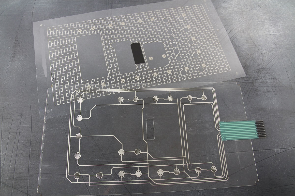 На участке шелкографии на ПЭТ-пленке изготовили слои гибкой печатной электрики с применением токопроводящей пасты, диэлектрика и графита. Один из слоев выполнен для экранирования от статического электричества. На участке сборки сделали промежуточный контроль работоспособности электрики.