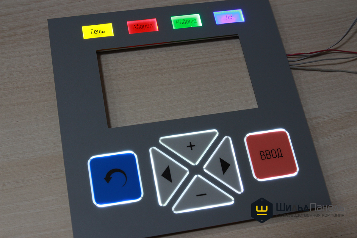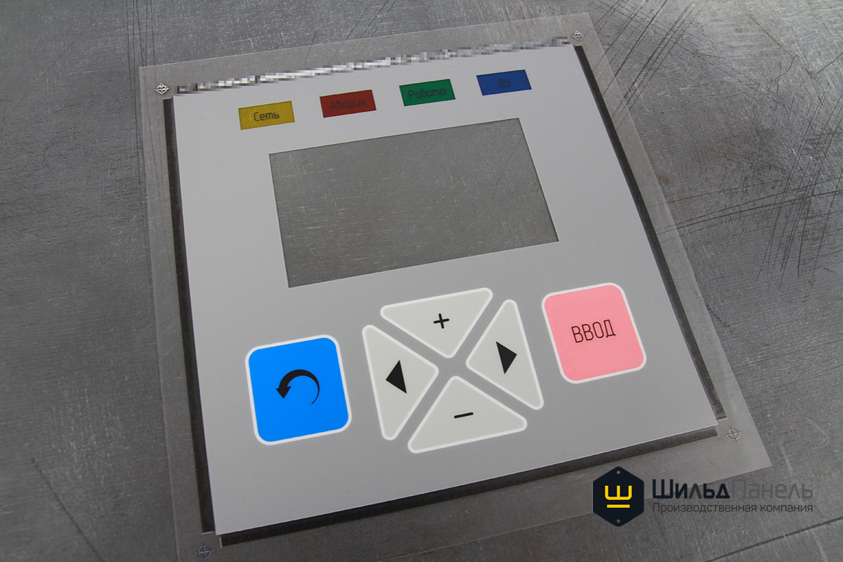 Методом шелкографии на лавсане F150 мкм изготовили пленочную лицевую панель.