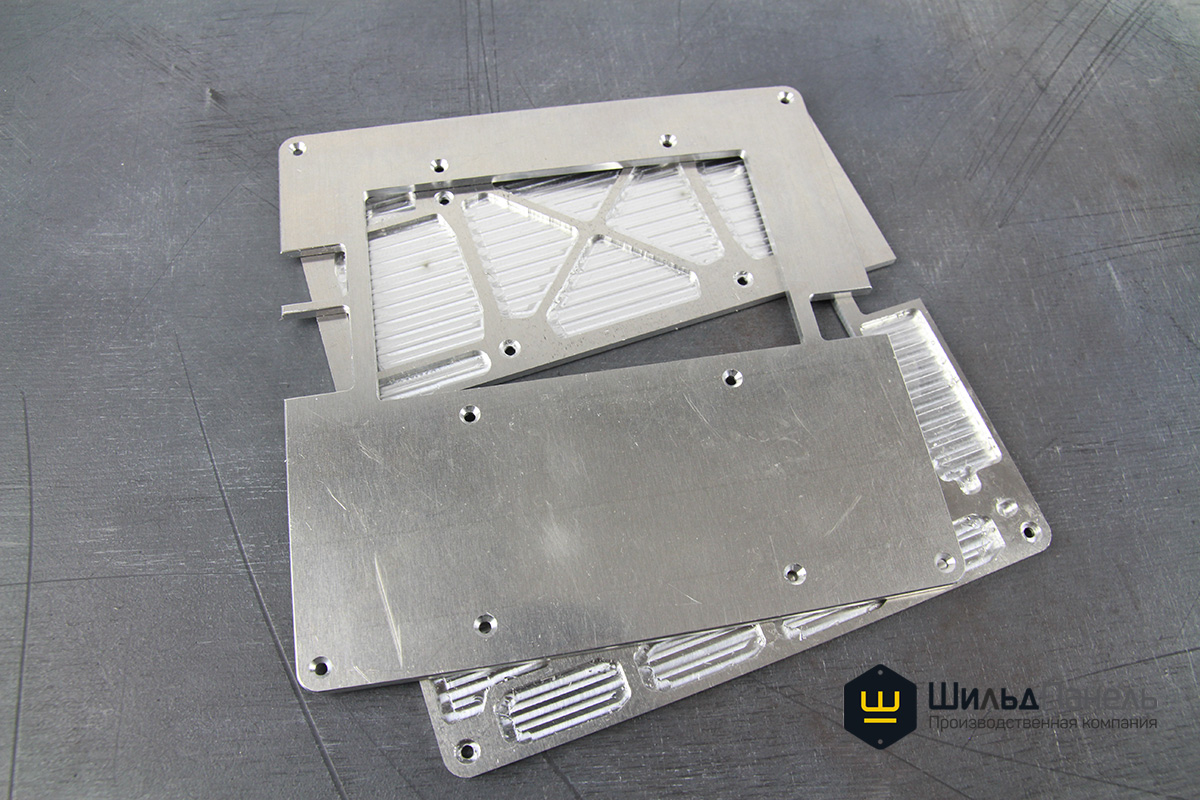 Из 3.0 мм алюминия АМГ2М на ЧПУ-фрезерном станке отфрезеровали 2 вида пластин - основание панели и прижимную планку.