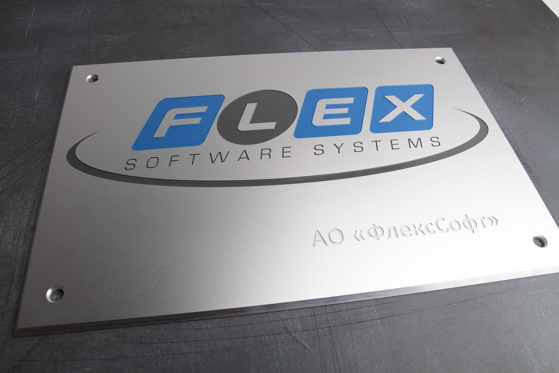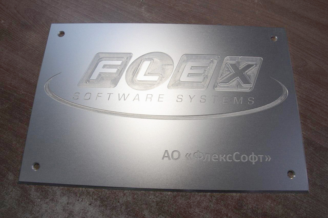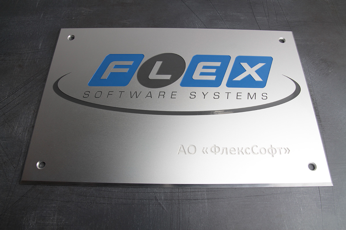 Для данной таблички мы используем 3.0 мм анодированный алюминий с глубиной пор для уличного применения. На фрезерном ЧПУ-станке сделали механическую гравировку надписей (выборка высотой 1 мм).